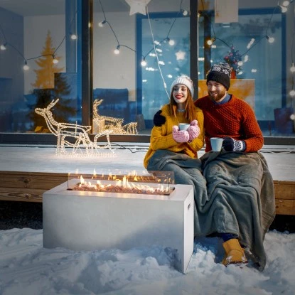 Egal ob Terrasse, Garten oder Balkon, diese Feuerstelle macht überall eine gute Figur. Denn durch das elegante, minimalistische Design fügt sich der Graue Feuertisch in jede Gartenausstattung ein. Der Tisch ist aus hochwertigem, regenresistentem Material gefertigt. Ein Windschutz aus speziellem gehärtetem Glas sorgt dafür, dass selbst stärkerer Wind dem Feuer nichts anhaben kann. Zusätzlich verleiht der Glasschutz der Feuerstelle eine stilvolle Note.