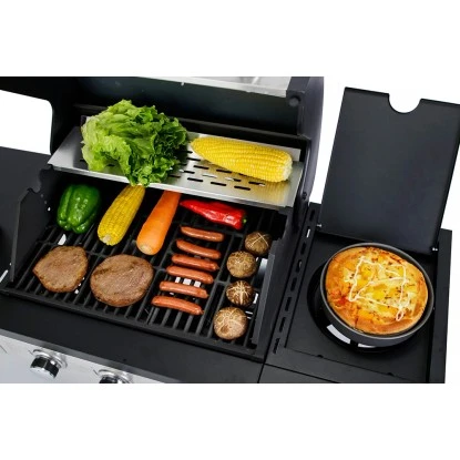 Das schlichte, hochwertige Design in Edelstahl in Kombination mit der hohen Funktionalität des Gerätes, lässt keinerlei Wünsche offen und wird sowohl Besitzer als auch Gäste beeindrucken und die vielfältigen Einstellungsmöglichkeiten dieses Grills erlauben es, jede beliebige Speise optimal zu garen – für eine reichhaltige und gesunde Ernährung. Ein Seitenbrenner ermöglicht zudem zusätzliche Flexibilität, z.B. können Sie damit gleichzeitig eine Soße kochen.