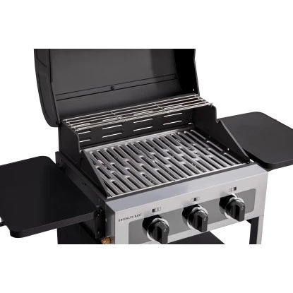 Der Drei-Brenner-Grill hat stufenlos und voneinander unabhängig regulierbare Edelstahlbrenner. So können Sie sowohl direkt als auch indirekt grillen. Die Flammenabdeckungen verhindern, ein Aufflammen des Feuers durch herabtropfendes Fett. Darüber hinaus helfen sie, die Hitze gleichmäßig zu verteilen und schützen die Brenner.