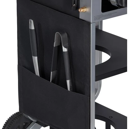 Für den einfachen Transport hat das Gerät 2 große Outdoor-Räder. Die 5 Kilogramm-Gasflasche verstauen Sie während des Betriebes direkt im Unterbau.