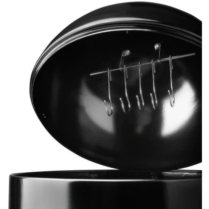 Direkt im Deckel befindet sich ein Highlight des Grills: eine Stange mit fünf Fleischhaken. An den Haken können Sie Würstchen, Fisch und anderes Räuchergut perfekt befestigen. Damit das Grillgut nicht aufliegt, sollten Sie die oberen ein bis zwei Grillroste weglassen. Der Grill eignet sich auch ideal als Campinggrill oder für den nächsten Ausflug in den Park. Nehmen Sie dafür einfach nur den unteren Kessel mit Rost und den Deckel mit. Den Transport vereinfacht der stabile Griff am Deckel. Mit dem dreibeinigen Fußgestell besitzt der Griller einen äußerst sicheren Stand.