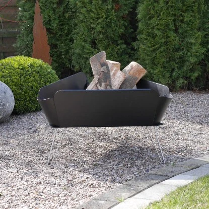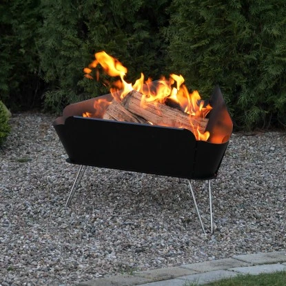 Die Vasner Feuerschale Merive M1 ist die perfekte Design-Feuerschale für jeden Garten und jede Terrasse. Mit ihrem Korpus aus pulverbeschichtetem Stahl in mattem Schwarz und ihren silberfarbenen Standbeinen aus gebürstetem Edelstahl, sieht sie äußerst elegant aus und passt farbtechnisch zu jeder Möblierung. Außerdem sorgt die Pulverbeschichtung für eine geringere Rostanfälligkeit und eine höhere Hitzebeständigkeit. Mit ihrer praktischen, dreieckigen Form passt sie auch in kleine Raumkonzepte. Durch ihre kurzen Standbeine ist die Feuerstelle gerade für niedrige Sitzgelegenheiten wie z.B. Lounge-Gruppen bestens geeignet. Sobald die Feuerschale bei Ihnen angekommen ist, brauchen Sie lediglich die Edelstahl-Beine an den Feuerschalen Stahl-Korpus anbringen, die entsprechenden Schrauben und Schraubenschlüssel sind in der Lieferung mit enthalten. Der Zusammenbau der Feuerschale ist binnen weniger Minuten vollbracht. Vorteilhaft ist auch die Leichtigkeit der Feuerstelle. Trotz der hohen Qualität des Materials bringt die Merive M1 nur 4,85 kg auf die Waage. So kann man sie kurzerhand in den Kofferraum einladen und überall hin mitnehmen. Entfachen Sie in dieser außergewöhnlichen Design-Feuerschale ein stilvolles Feuer an all Ihren Lieblingsorten. Achtung! Zum Entzünden des Feuers dürfen KEINE flüssigen Brandbeschleuniger (z.B. Spiritus, Benzin o.ä.) eingesetzt werden! Die deutlich höheren Temperaturen können Schäden an der Pulverbeschichtung des Feuerkorbes zur Folge haben. Feuerschalen und Feuerkörbe entwickeln große Hitze. Achten Sie daher darauf, dass diese in alle Richtungen genügend Abstand zu brennbaren Materialien haben und der Untergrund des Aufstellortes für größere Hitze geeignet ist, damit kein Schaden entsteht! Ausstattungsmerkmale: – Niedrige Höhe – passend zu Lounge-Sesseln – Maße (H x B x T): 40 x 57 x 59,5 x cm – Außergewöhnliches, modernes Design – Flach und offen für 360° Wärmeabstrahlung – Abgerundete Dreiecks-Form integriert sich auch in kleine Räume – Hochqualitative Fertigungsmaterialien – Extra robuster Korpus aus pulverbeschichtetem Stahl – Stabile Beine aus gebürstetem Edelstahl – Geringes Gewicht: 4,85 kg – Blitzschnelle Montage Lieferumfang: 1 x Merive M1 Schale 3 x Edelstahl Standbeine 1 x Montageset (Schrauben & Schraubenschlüssel) 1 x Bedienungsanleitung