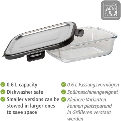 Die Wenko Glas Frischhaltedose Steel Black Outdoor Kitchen 0,6 l, die in Ihrer Outdoorküche für BBQ, Brunch und Grillevent nicht fehlen sollte. Mit den Utensilien der Reihe Black Outdoor Kitchen gibt Wenko Ihnen das rundum Paket an Koch-, Grill- und Küchenhelfern an die Hand, die Ihre Außenküche noch funktionaler macht.